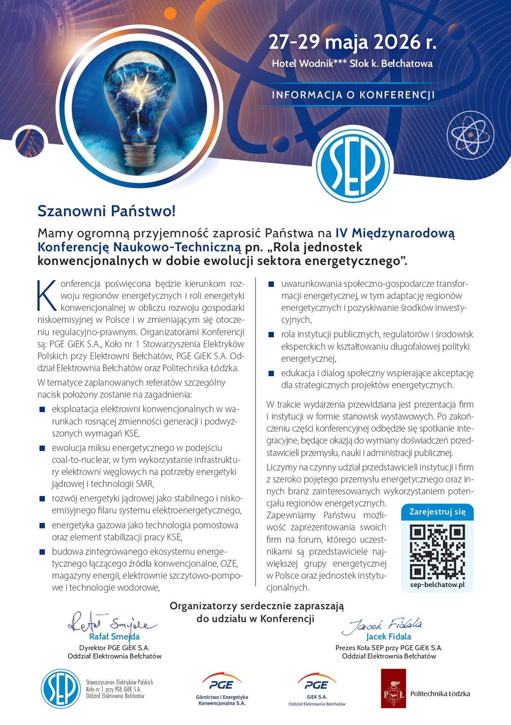 IV Międzynarodowa Konferencja Naukowo - Techniczna 2026 pn. "Rola jednostek konwencjonalnych w dobie ewolucji sektora energetycznego".